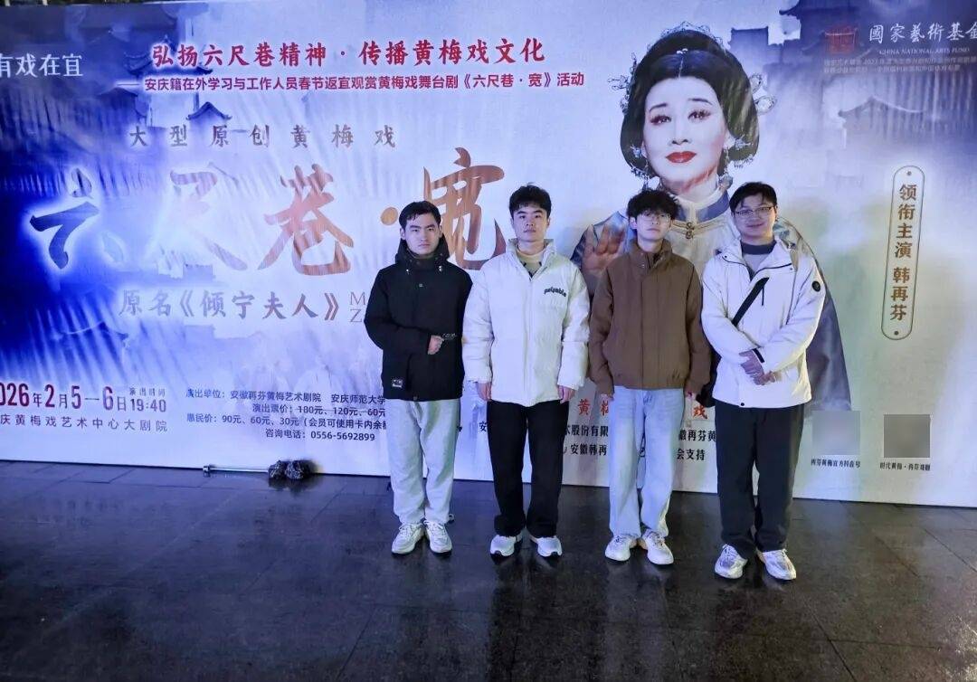 正在安庆,学院返乡学子走进安庆黄梅戏艺术核心大剧院,沉浸式旁不雅韩再芬从演的黄梅大戏《六尺巷》,感触感染保守文化正在戏剧艺术中的活泼表达。随后,学子们取国度一级演员、安徽再芬黄梅文化艺术股份无限公司董事长韩再芬面临面深切交换,接管了一场温暖深刻的美育思政课。此次对话让学子们深切体味保守艺术魅力,进一步果断文化自傲,为家乡文化复兴注入芳华思虑。